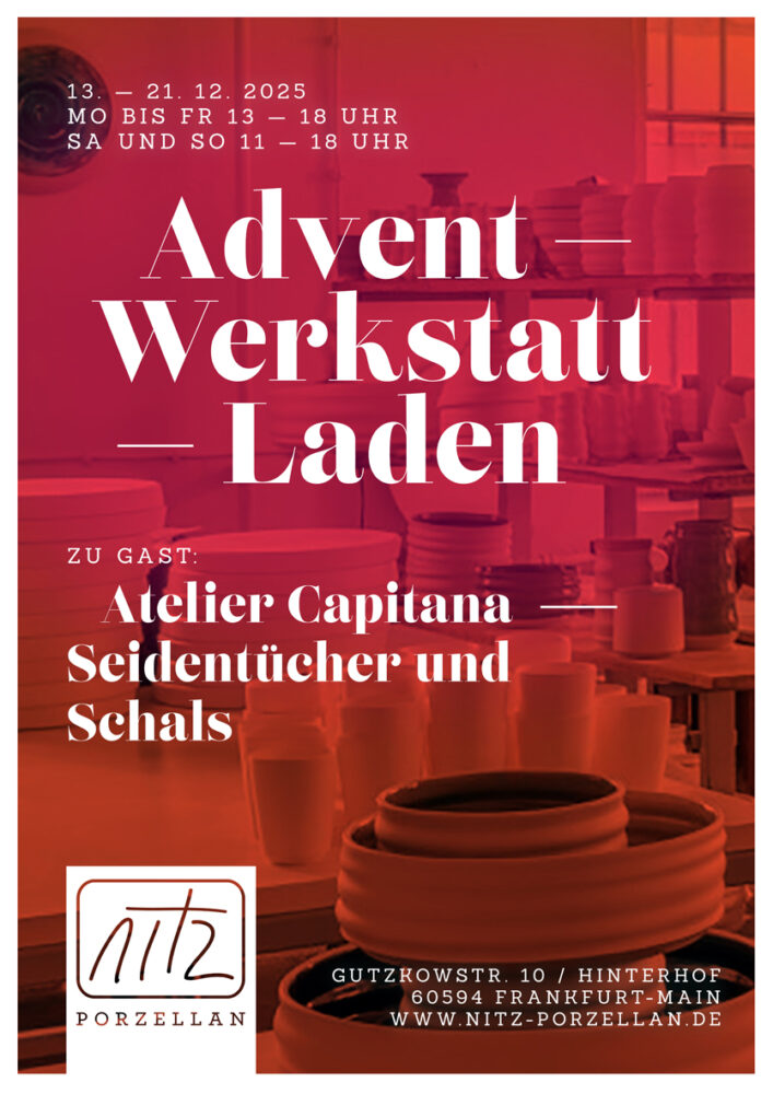 momentan bin ich in der Werkstatt zu finden – kommt gerne vorbei – ruft lieber vorher kurz an – ich freu mich immer über besuch …außerdem gibt es nitz-porzellan in Frankfurt bei Lorber im Nordend, Iduellspace und in der Gartenlaube in Bornheim, Atelier des Tartes in Sachsenhausen, Alexandra Baum Schmuck in Bockenheim Bei Blühreif in […]